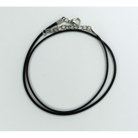 Шнурок из эко-кожи черного цвета, длина-60,0+5см. Замок- карабин из ювелирного сплава серого цвета.