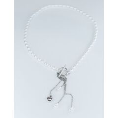 Колье женское двухъярусное из гипоаллергенного ювелирного сплава серого цвета. Вставка- жемчуг иск., цвет- белый и ювелирное стекло белого и черного цвета. Длина колье-50,0см. Замок- шпрингельный.