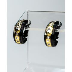 Серьги из гипоаллергенного ювелирного сплава черного и желтого цвета. Вставка- ювелирное стекло белого цвета. Высота серег--2,0см, ширина-2,0см. Застежка- пусет.