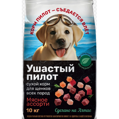 Собачий корм Ушастый пилот мясное ассорти - это самое лучшее, сбалансированное питание для щенков, которое создано специально, чтобы обеспечить вашего питомца всеми необходимыми полезными элементами, витаминами и миниралами.