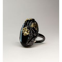 Кольцо женское из гипоаллергенного ювелирного сплава черного и желтого цвета. Вставка- улексит( кошачий глаз) голубого цвета. Высота кольца-2,5см, ширина-1,6см. Размер-17,0.