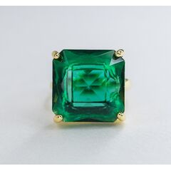 Кольцо из гипоаллергенного ювелирного сплава желтого цвета. Вставка- ювелирное стекло, цвет- зеленый. Высота кольца-3,0см, ширина-1,5см. Размер-18,0.
