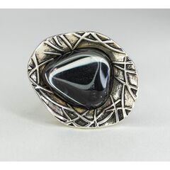 Кольцо женское из гипоаллергенного ювелирного сплава, цвет-серый. Вставка- ювелирное стекло черного цвета. Высота кольца-3,0см, ширина-1,0см. Кольцо- незамкнутое, безразмерное.