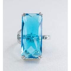 Кольцо женское из гипоаллергенного ювелирного сплава, цвет-серый. Вставка- ювелирное стекло голубого цвета. Высота кольца-3,0см, ширина-1,0см.