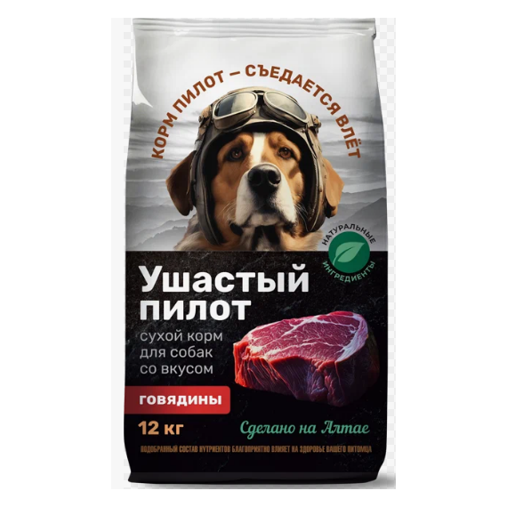 Собачий корм Ушастый пилот - это обогащеный витаминами и миниралами, сбалансированный, сухой корм для собак всех пород со вкусом говядигны. Поддерживает активность собак.