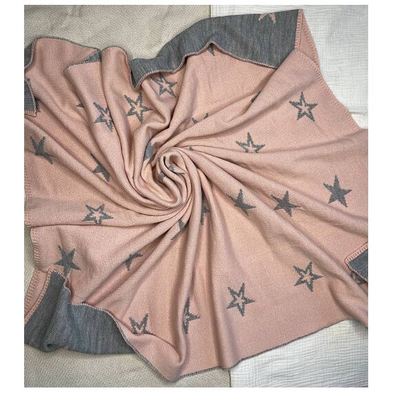 Плед вязаный двухсторонний Звезда. Пудра/Серый р 100*100см