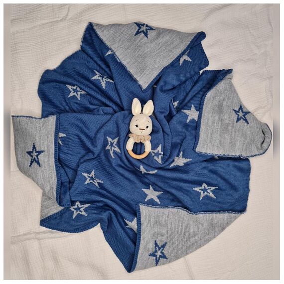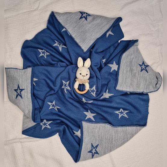 Плед вязаный двухсторонний Звезда. Синий р 95*95см