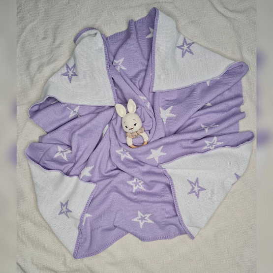 Плед вязаный двухсторонний Звезда. Приятного сиреневого цвета.