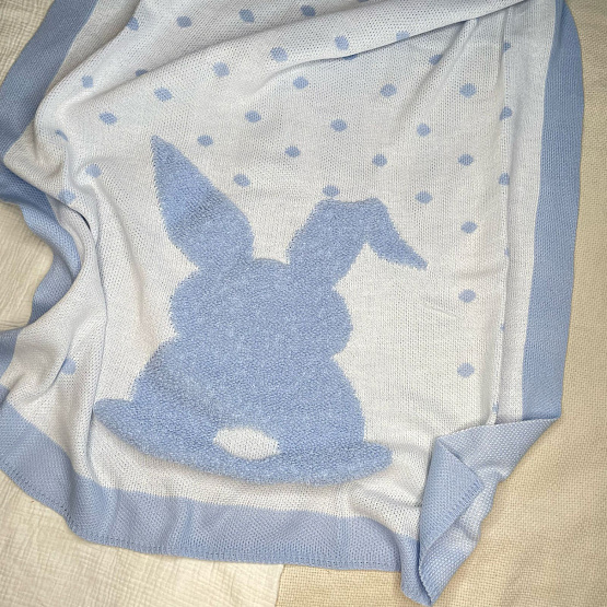 Вязаный плед в голубом цвете «Зая».