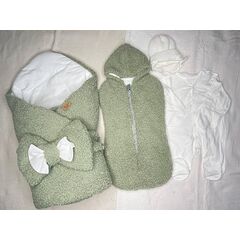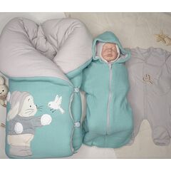 Комплект на выписку и дальнейшего использования "Малышок " Комплектация состоит из 4 предметов: 1. Одеяло-конверт на 4х пуговицах. На одеяле присутствует милая вышивка мишки. Размер одеяла в расправленном виде: 100х100 см (+-5 см) 2. Пеленка-кокон на молнии. С капюшоном. У молнии защитная...