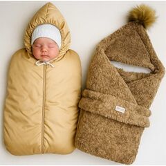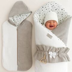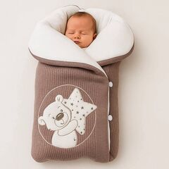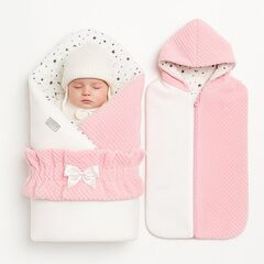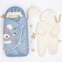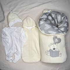 Конверт на выписку с коконом, шапочкой и слипом Размер одеяла: 100×100 см Сезон: зима Многофункциональный комплект для новорождённого — идеален для выписки, прогулок и повседневного ухода. Всё продумано до мелочей: комфорт, безопасность и нежный стиль. В комплект входит: Одеяло-конверт из...