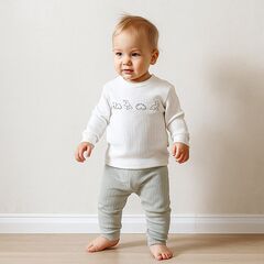 Костюм "Baby Dino" - это модный и удобный комплект для детей. Изготовленный из приятной, гипоаллергенной ткани, этот костюм станет идеальным выбором для вас. Лонгслив молочного цвета, костюма украшен вышивкой в виде милых динозавриков, а ручки на манжетах добавляют особый стиль. Кнопки на плече...