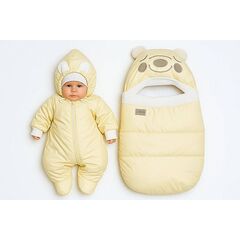 Комбинезон лапша, молочный Шикарные Мишки из приятной ткани "лапша", тёплая мерлушка и забавные ушки. Удобная застежка на молнии и теплый капюшон, отороченный мерлушкой, согреют малыша и подарят ему мягкость и комфорт. Подходит для выписки из роддома, на прогулки, как поддева в конверт....