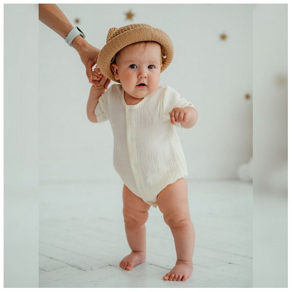 Боди муслин, на кнопках, молочного цвета. Легкое боди из воздушного однотонного муслина.
