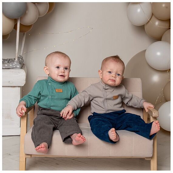 Брюки комфортной ширины рассчитаны специально малышам с учётом памперса. Пояс на резинке. Карманы "как у папы".