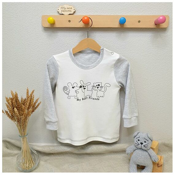 Лонгслив детский на двух кнопках с принтом "BEST FRIENDS" рост 86