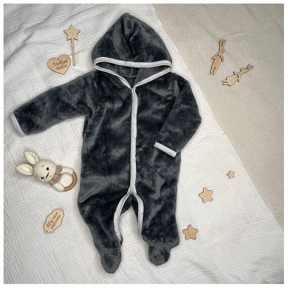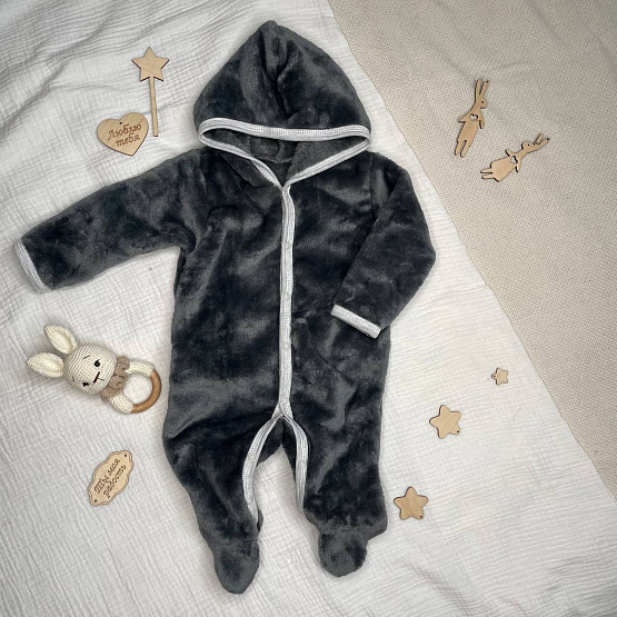 Плюшевый комбинезон размером на рост 62. Модель с капюшоном, ручки открыты.ножки закрыты. Удобные кнопки по всей длине комбинезона.