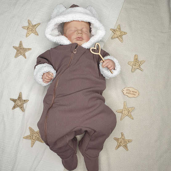 Шикарные Мишки из приятной ткани "лапша", тёплая мерлушка и забавные ушки. Удобная застежка на молнии и теплый капюшон, отороченный мерлушкой, согреют малыша и подарят ему мягкость и комфорт. Подходит для выписки из роддома, на прогулки, как поддева в конверт.
