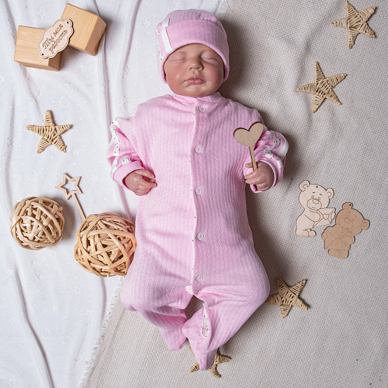 Комбинезон с шапочкой, ажурный интерлок, розовый рост 68