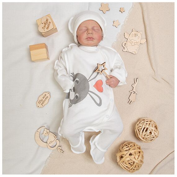 Комбинезон с шапочкой на кнопках с принтом Заяц рост 62