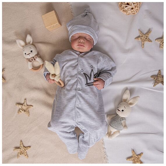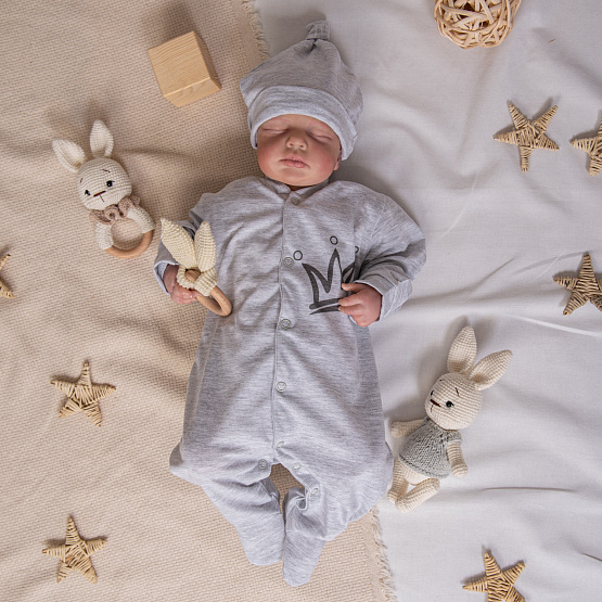 Комплект для новорожденного. Комбинезон-слип ручки на манжете, ножки закрыты. В комплекте шапочка "узелок"