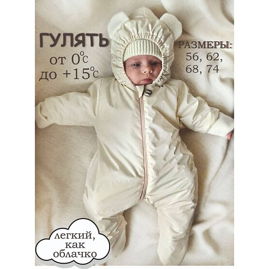 Мы разработали для вас удобный теплый и практичный комбинезон. Ткань верха теплая и непродуваемая дюспа, подклад кулирка 100% хлопок, что не мало важно для малыша, наполнение холстон, создаст дополнительное тепло, удобная застежка молния. Цвет универсальный светло-молочный. Заказывайте Вы останетесь довольны.