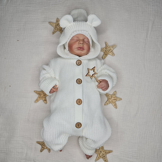 Комбинезон вязаный Мишка белого цвета