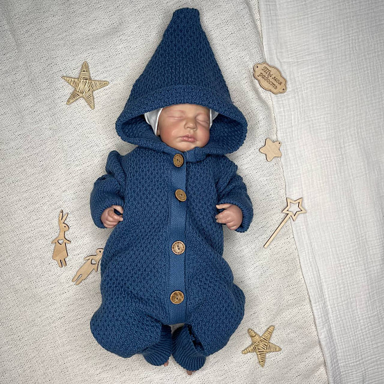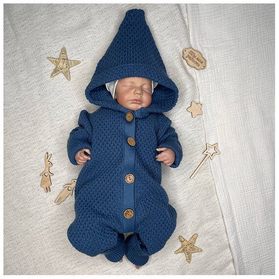 Вязанный комбинезон с глубоким капюшоном, на пуговицах с растущими манжетами.