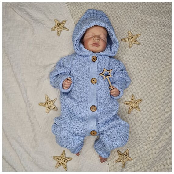 Вязанный комбинезон с глубоким капюшоном, на пуговицах с растущими манжетами.