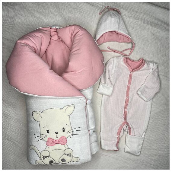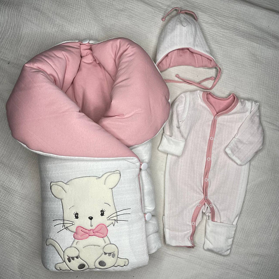 Эксклюзивный комплект на выписку. Деми. Котик. Розовый рост 56
