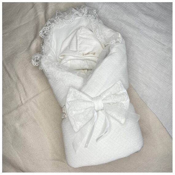 Белоснежный комплект на выписку с кружевом и шикарным бантом