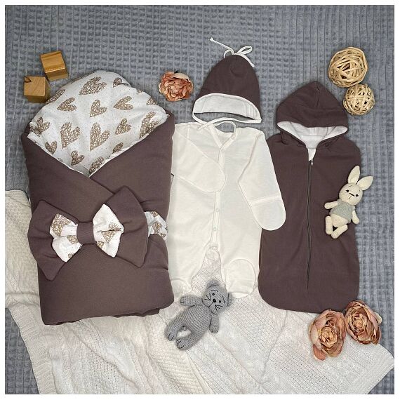 Комплект на выписку из фактурной трикотажной лапши и легко трансформируется в мягкое одеяло.