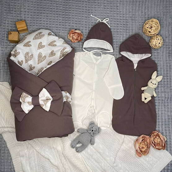 Комплект на выписку из фактурной трикотажной лапши и легко трансформируется в мягкое одеяло.