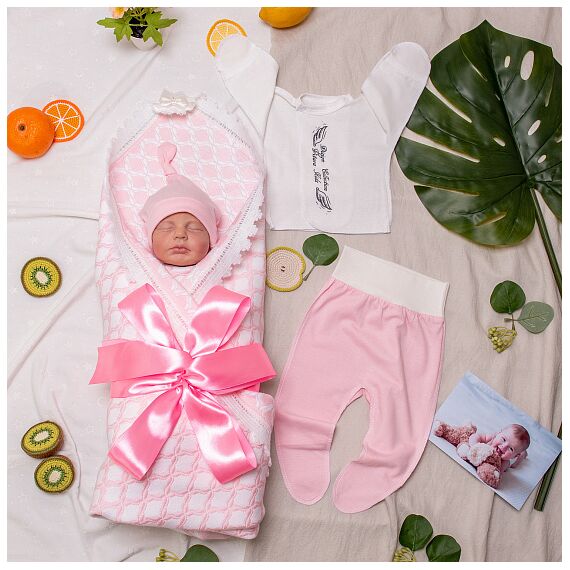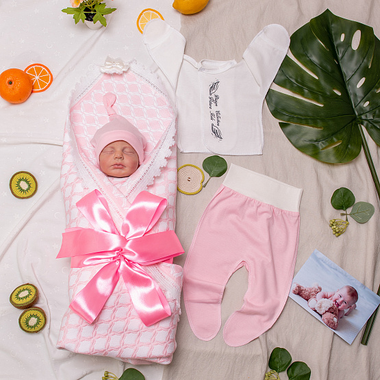Комплект на выписку «Swan-Song» розовый лето рост 56