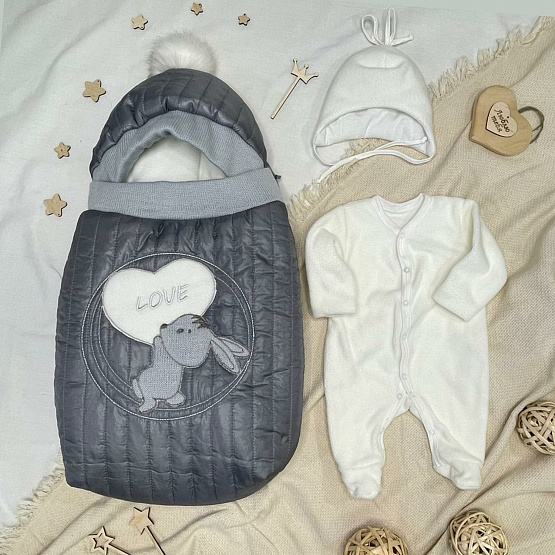 Конверт на выписку "Зайка Love", серый, деми рост 56