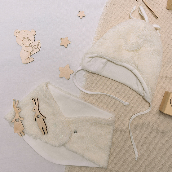Комплект детский Шапочка и снуд, молочный р 38-40
