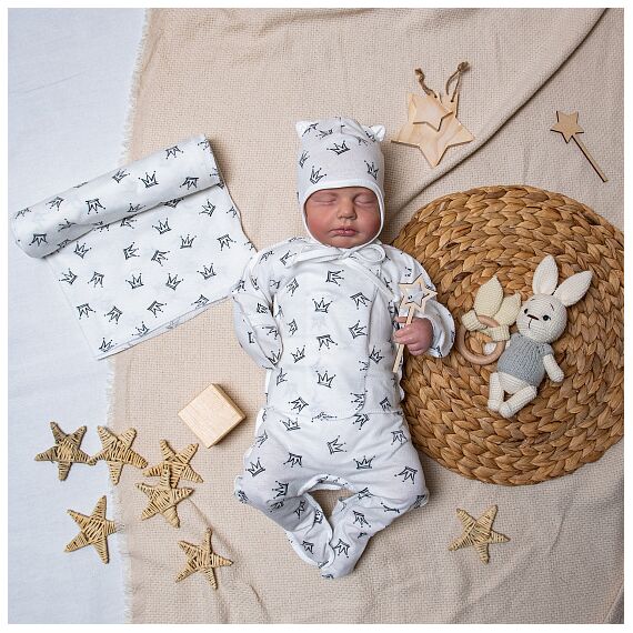 Комплект выполнен из 100% хлопка, подходит для выписку, прогулки или просто для ежедневной носки!