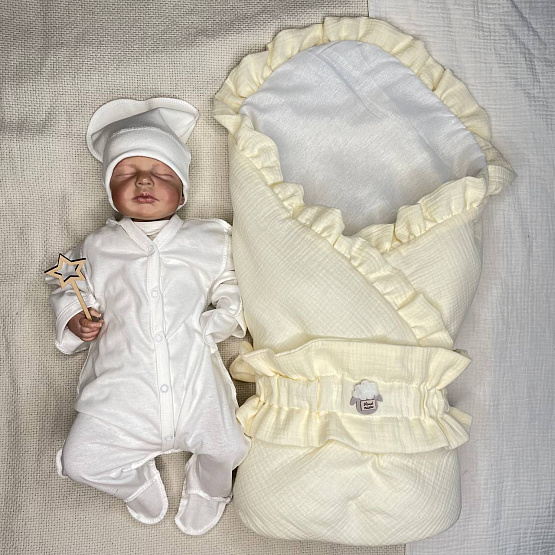 Конверт-одеяло молочного цвета, размер одеяла 100/100 см (+,- 5 см) Конверт с рюшами на одной кнопке.