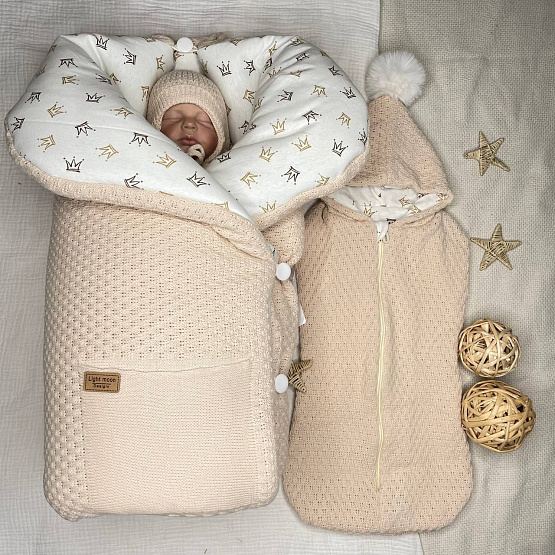 Комплект вязаный "Пушок" бежевый. Деми рост 56