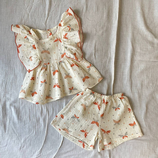 Костюм из муслина для девочки. Футболка и шортики