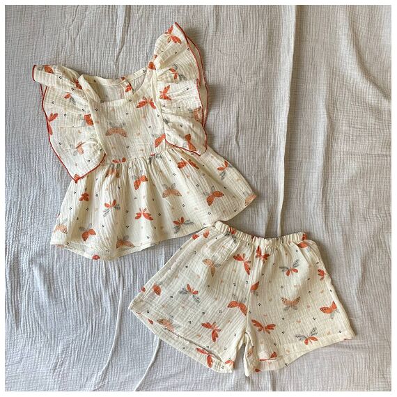 Костюм из муслина для девочки. Футболка и шортики