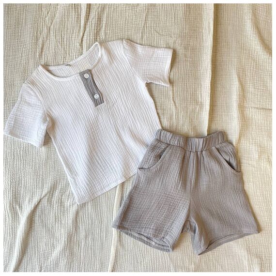 Костюм детский муслиновый с шортами для мальчиков создан из качественного муслина, который является дышащей тканью и не нагревается на солнце, что позволяет чувствовать себя комфортно в жаркую погоду.