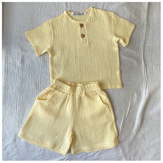 Костюм детский муслиновый с шортами для мальчиков и девочек создан из качественного муслина, который является дышащей тканью и не нагревается на солнце, что позволяет чувствовать себя комфортно в жаркую погоду.