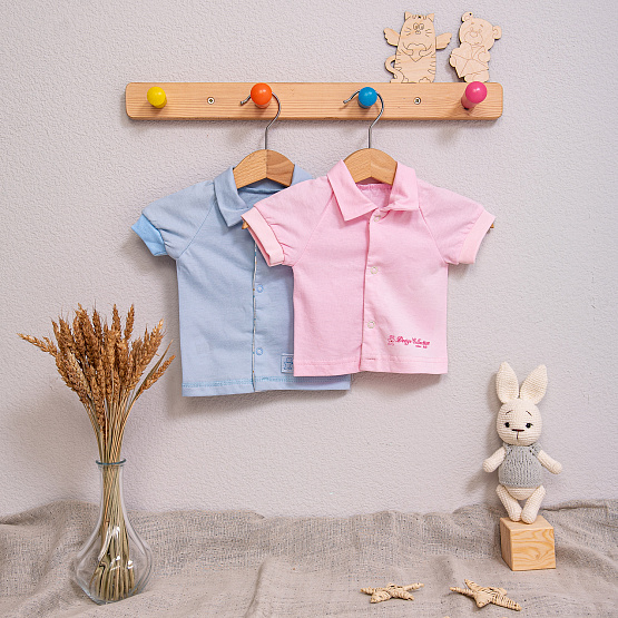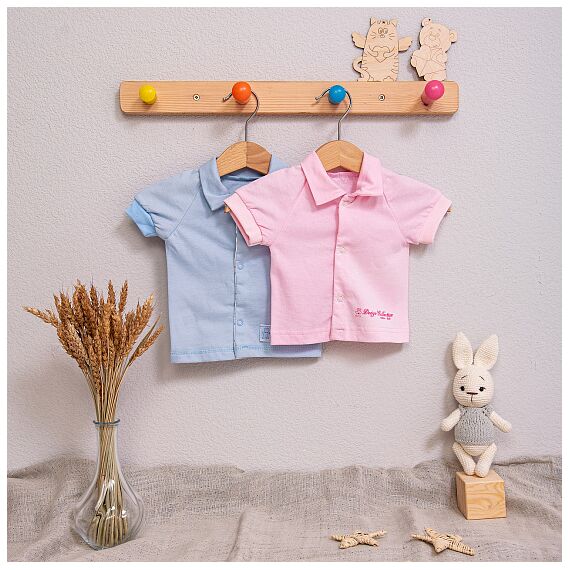 Модель застегивается на кнопки, воротничок и короткие рукава на рибане. Внизу на левой полочке вышивка VITARA.