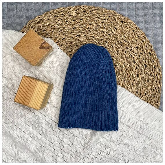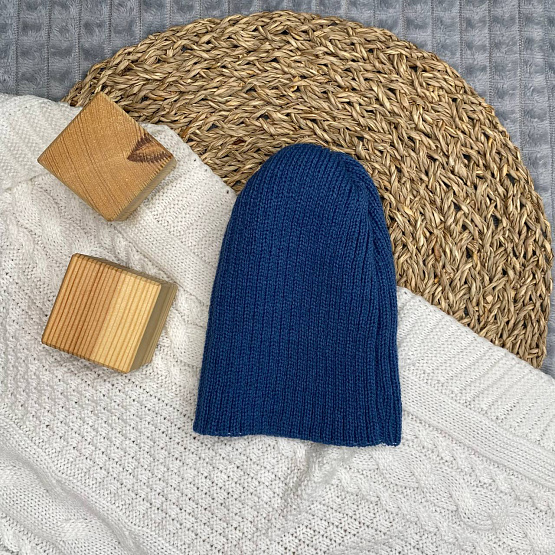 Шапочка детская в стиле "Бини". вязаная. полушерсть, джинс р 38-40