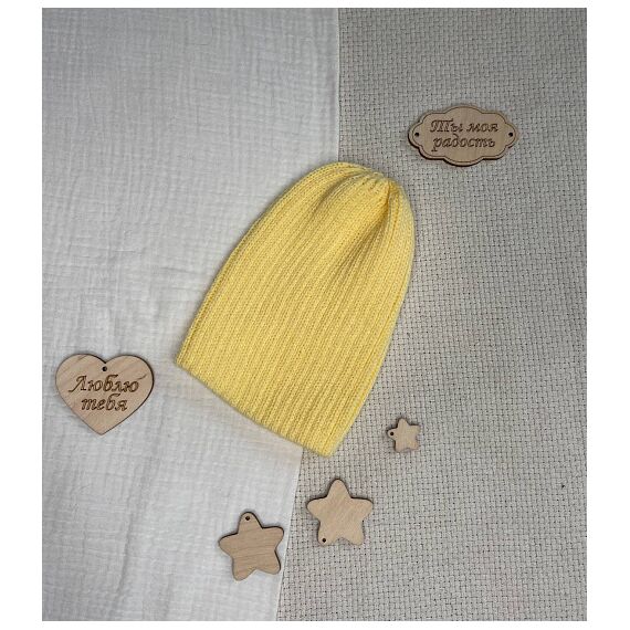 Шапочка детская в стиле "Бини". вязаная. полушерсть, желтая р 38-40