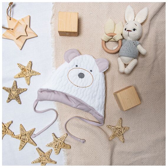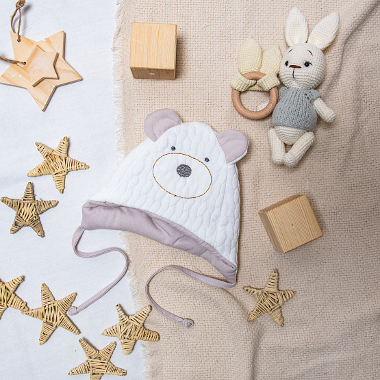 Шапочка утепленная Мишка. Бежевая р 38-40