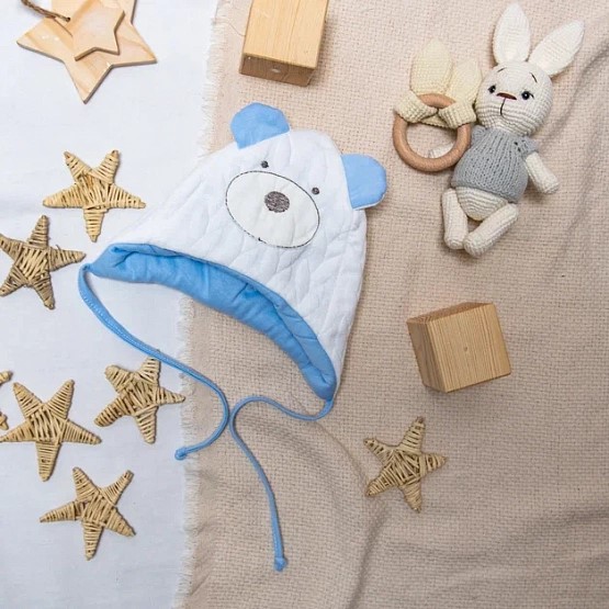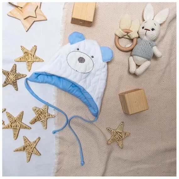 Шапочка утепленная Мишка. Голубая р 38-40