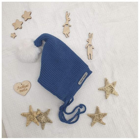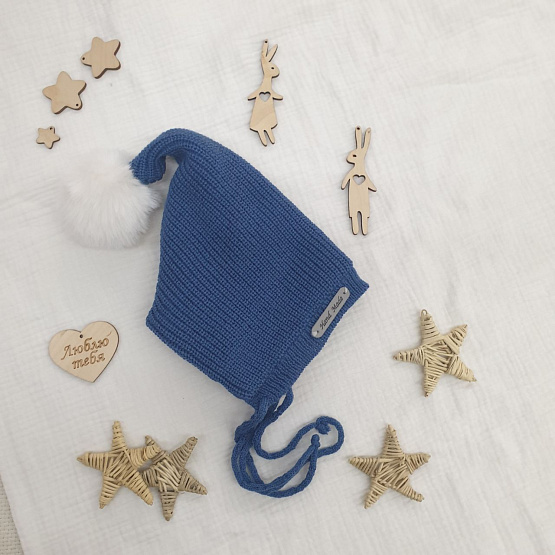 Шапочка вязаная с помпоном "Гномик", джинс р 0-3 мес