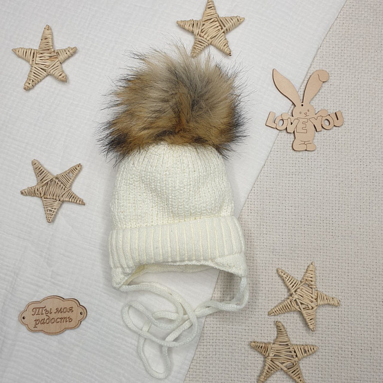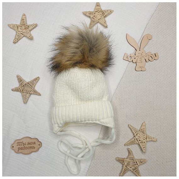 Шапочка вязаная с помпоном молочный р 38-40